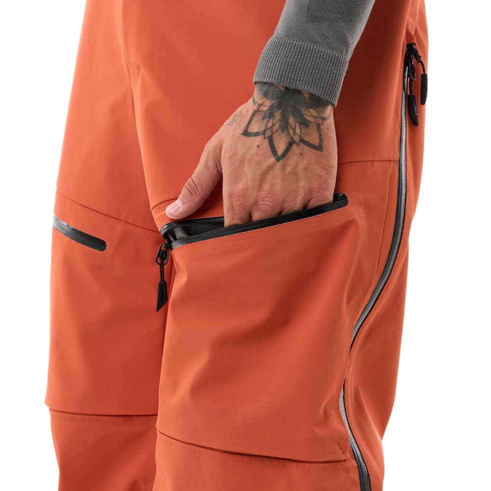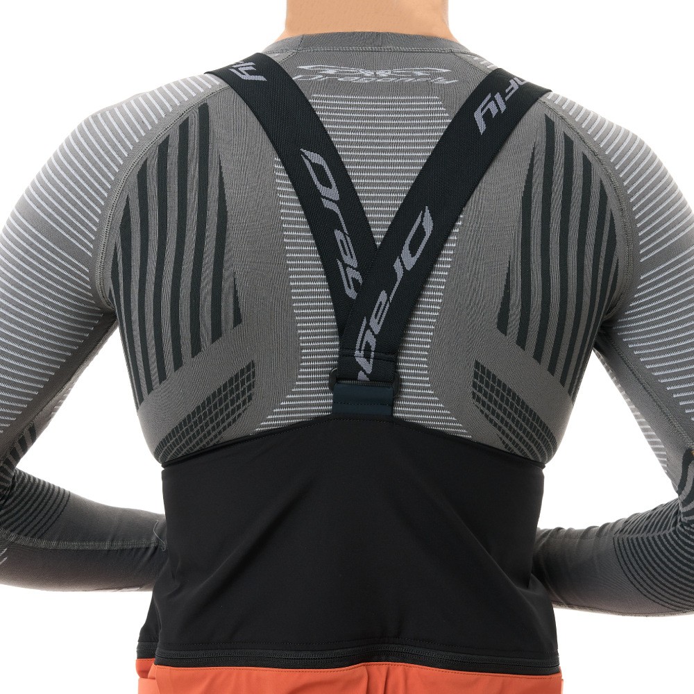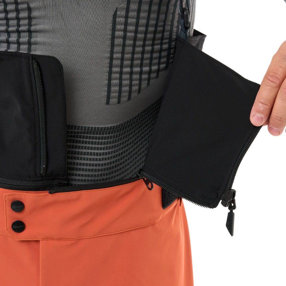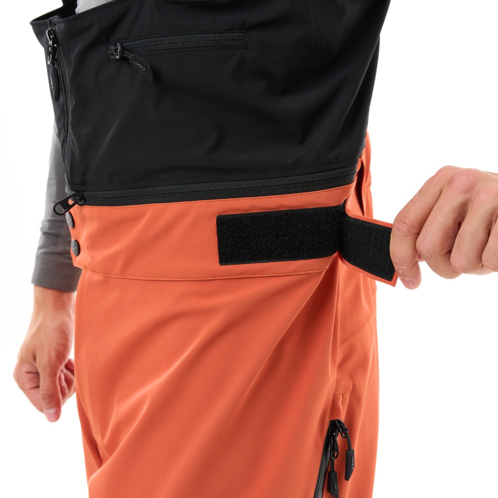 - Верх представляет собой съемную жилетку с карманом и регилируемыми подтяжками: с ним брюки превращаются в полукомбинезон, слитый с телом даже во время интенсивных движений