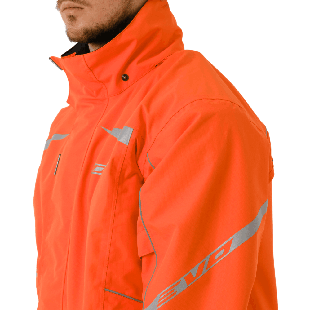 Серия дождевиков EVO разработана для мотопутешествий, подходит для поездок на мотоцикле, квадроцикле, багги и другой внедорожной технике. Можно использовать также для командных соревнований, сплавов, яхтинга, туристических походов, прогулок по лесу за грибами и ягодами, рыбалки и иного активного летнего отдыха.Непромокаемая куртка EVO быстро и с легкостью надевается на одежду или экипировку. Сшита из прочной водонепроницаемой и ветрозащитной мембранной ткани DFTEX (плотность 165 г/м², 100% полиэстер, показатели мембраны 20 000/ 20 000). Куртка не стесняет движений: эргономичный дизайн учитывает все особенности посадки и езды на большой скорости. Надежно защищает от ветра, пыли, дождя, грязи, обеспечивая комфорт в период непогоды. Все швы герметичные. Благодаря мембране материал отводит влагу от тела, не давая конденсату скапливаться на внутренней поверхности.