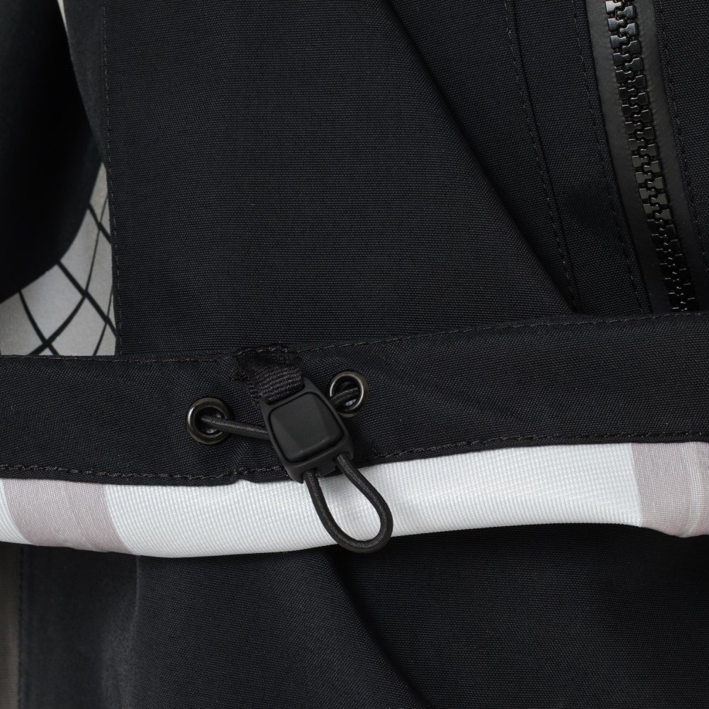 - Утяжка-резинка с фиксатором по низу куртки, утяжки-липучки на рукавах и манжеты из неопрена создают барьер, не пропускающий холод, влагу и грязь под куртку