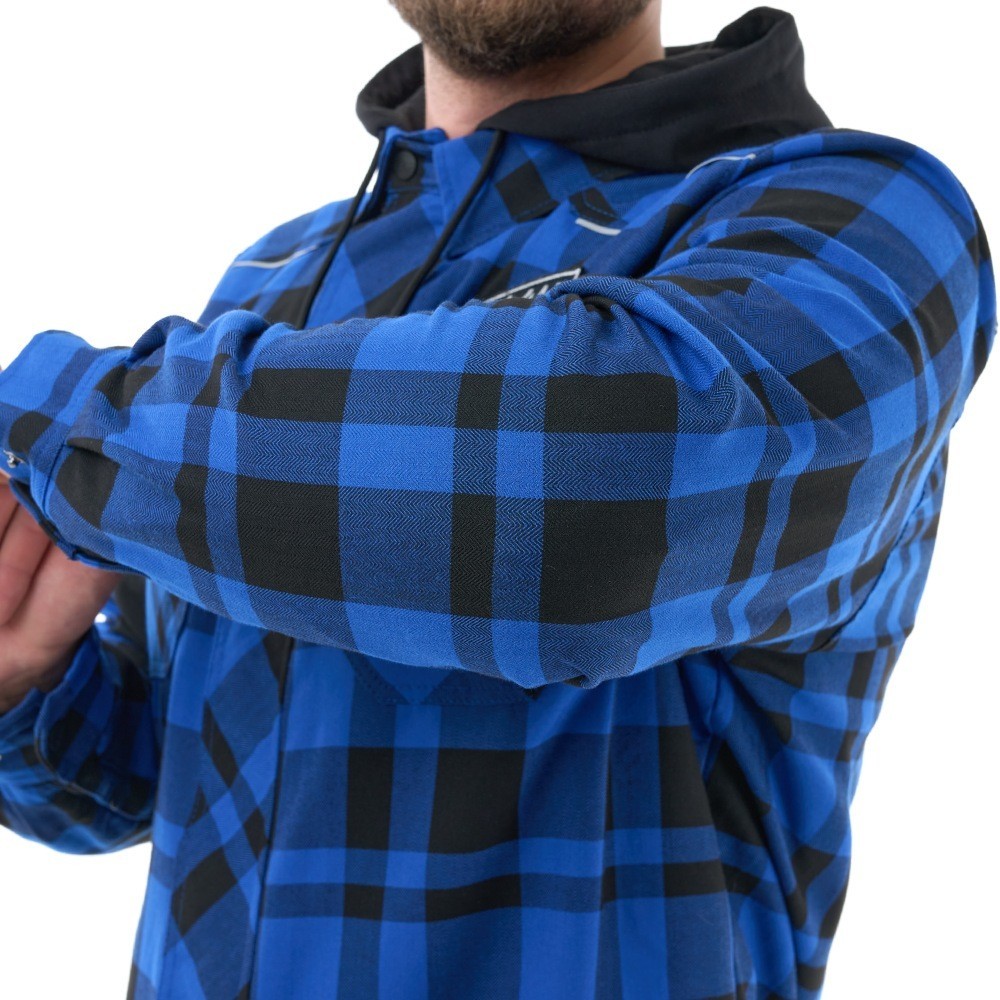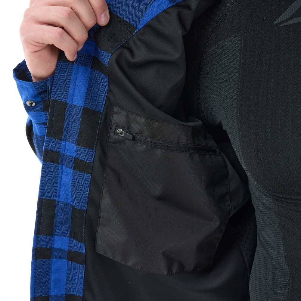 Моторубашка STREETFIGHTER для мужчин – вид летней экипировки, в который классический стиль и комфорт повседневной одежды дополнены необходимой мотозащитой. Предназначена для поездок на мотоциклах и квадроциклах. Сшита из поливискозы (65% полиэстер, 35% вискоза) и кевларовой ткани TERAMID (производитель Texland & Nexko, Южная Корея – мировой лидер материалов для мотоиндустрии). Устойчива к истиранию, разрывам и другим повреждениям. Натуральные волокна в составе ткани в сочетании с дышащим подкладом обеспечивают комфортный микроклимат даже в жару. Арамидные усиления присутствуют на локтях, плечах, спине. Софтшелл с мембраной в передней части надежно убережет владельца от ветра. Прочные немецкие нитки Coats gral гарантируют долговечность швов.Функционал модели разрабатывался совместно с опытными мотоциклистами. Скроена анатомически, не стесняет движений и учитывает особенности посадки на технику. В плечи и локти интегрированы протекторы премиум-класса турецкой фирмы ImpacTec TP-02 215/129 Velcro, поглощающие ударную нагрузку при падении или столкновении. Предусмотрен отсек для защиты спины ((Защита спины приобретается отдельно)). Рубашка рекомендована для температуры от +5 до +30 °С. Эта городская мотоэкипировка прекрасно сочетается с мотоджинсами, легким термобельем, подшлемниками, перчатками, фирменными футболками Dragonfly.