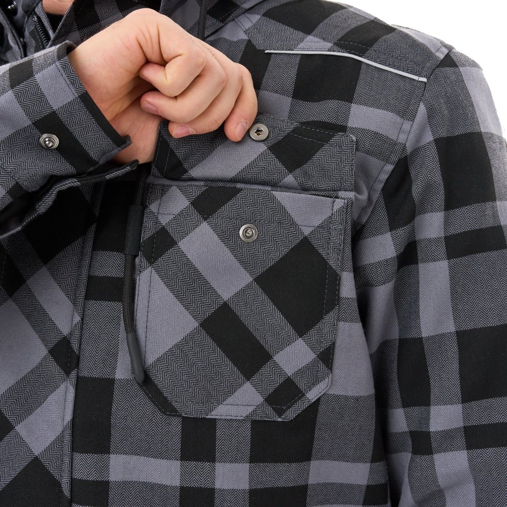 - Теплый съемный капюшон регулируется по объему, крепится на пуговицы; может пристегиваться к спине; шнурки-утяжки фиксируются и не мешают во время движения