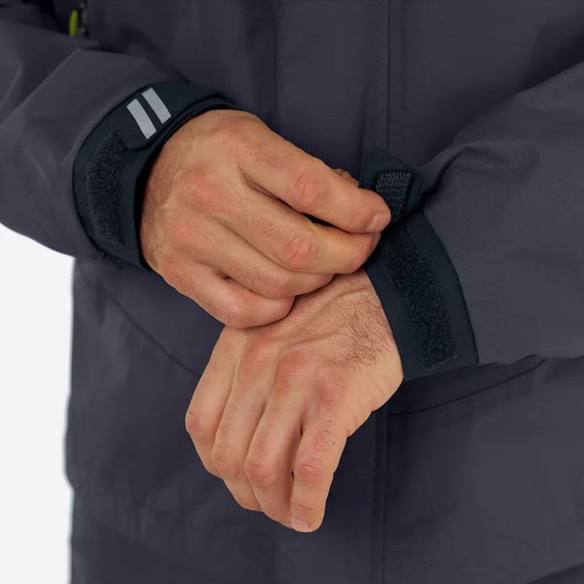 - Низ куртки регулируется для комфортной посадки и дополнительной защиты от ветра и брызг.