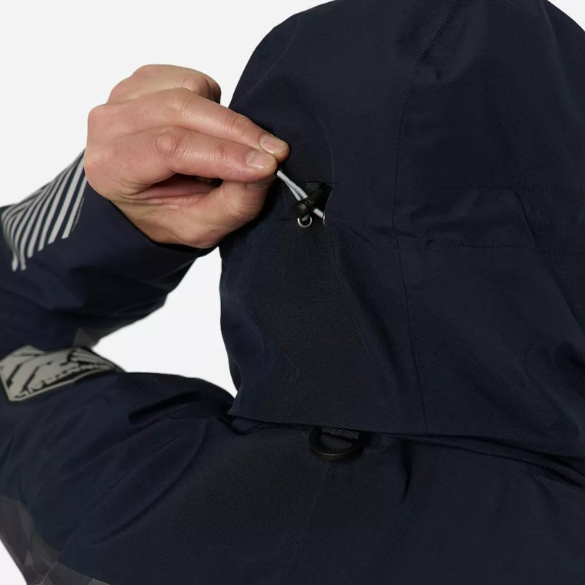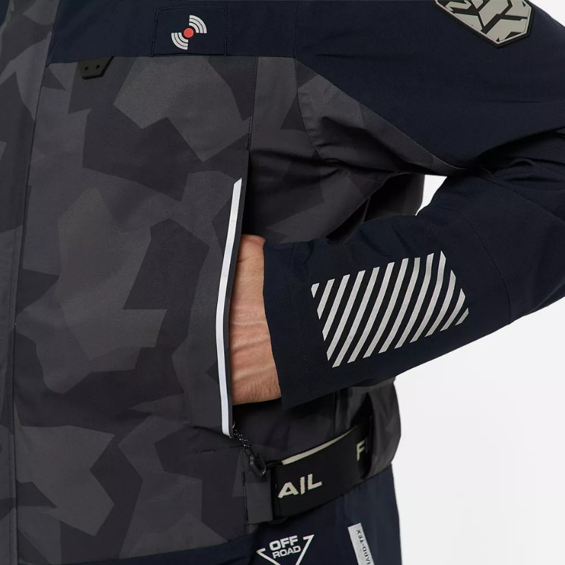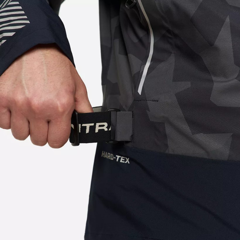 - Куртка оснащена интегрированным эластичным ремнём и кулисой внизу для подгонки по фигуре, страховочными кольцами для крепления с чеки, светоотражающими элементами для обеспечения безопасности в темное время суток.