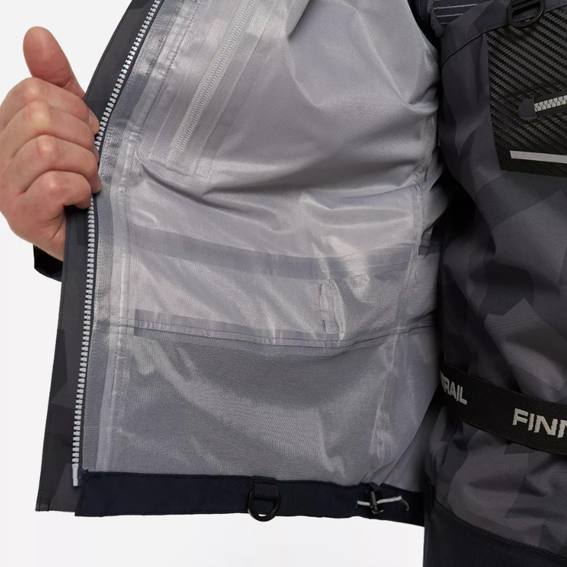 - Имеет отстёгивающийся капюшон, регулируемый по объёму в двух плоскостях, два внутренних кармана с влагозащитными молниями и два внешних нагрудных кармана с влагозащитной тракторной молнией, устойчивой к попаданию грязи.
