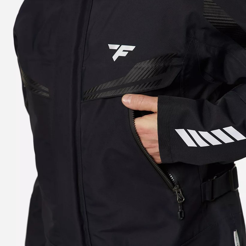 - Два нагрудных влагозащитных кармана с тракторными молниями YKK AquaGuard для предметов, которые необходимо иметь под рукой.