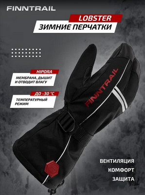 Перчатки Finntrail Lobster 2800 согреют руки и одновременно послужат защитой от солнечного излучения. Для изготовления модели используется мембранная ткань HIPORA, назначение которой состоит в том, чтобы отводить наружу испарения. Материал обладает ветро- и влагозащитными свойствами, поэтому аксессуар идеально подходит для рыбалки в сложных зимних условиях: модель рассчитана на использование при температуре до -30 °C. В качестве утеплителя используется Thermalrate. По своим теплосберегающим характеристикам он ничем не уступает гусиному пуху, но при этом лишен таких его недостатков, как гигроскопичность и большой объем. В трехпалых перчатках будет удобно держать удочку, работать ледобуром и багориком.