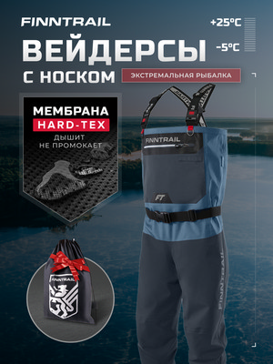 Вейдерсы Finntrail Proguide 1535 имеют максимальную степень защиты от проникновения воды. Они не дадут промокнуть во время забродной рыбалки и позволят ловить долго, не боясь переохлаждения. При изготовлении модели используется пятислойная мембранная ткань Hard-Tex, обеспечивающая высокий уровень комфорта и выдерживающая большие нагрузки. Высокая посадка позволяет заходить глубоко в воду, что дает возможность забрасывать приманки в перспективные точки, находящиеся в отдалении от берега, высвобождать блесны и воблеры из зацепов. Благодаря анатомическому крою колен в вейдерсах удобно приседать, передвигаться по берегу и переступать через препятствия. Во внешнем накладном кармане поместятся коробки с приманками, поэтому не придется носить с собой рюкзак.