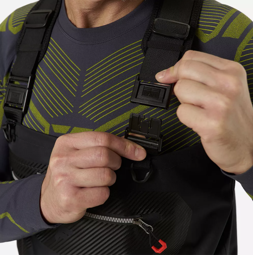 - Эластичные подтяжки и ремень на замке YKK позволяют регулировать посадку по фигуре.