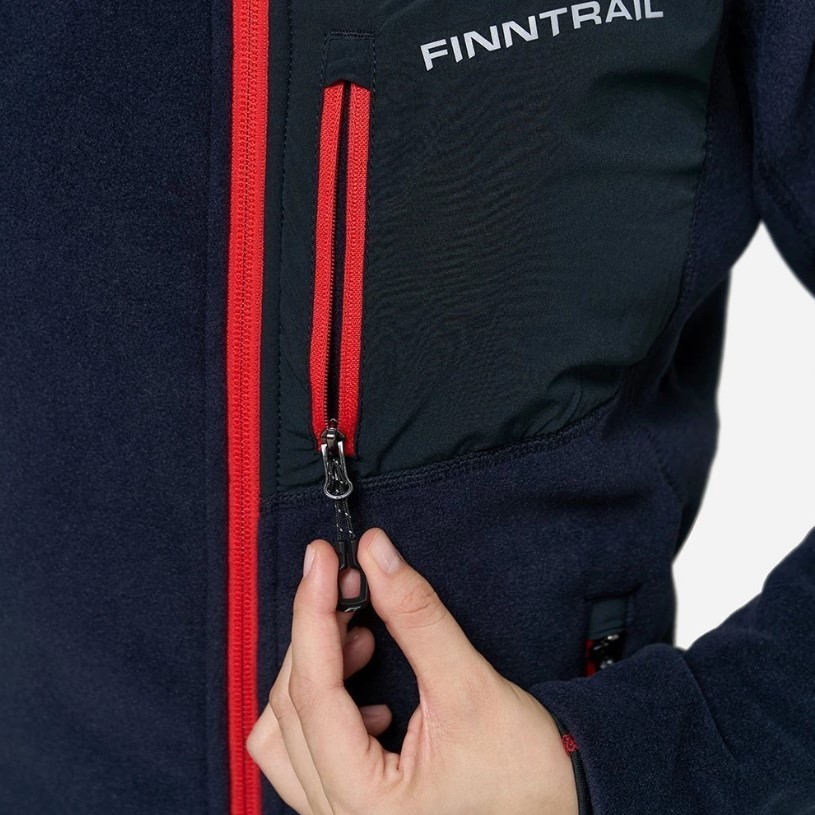 - Три кармана на молниях — два боковых и один нагрудный — для полезных мелочей.