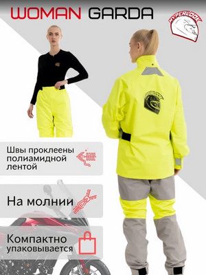 Дождевик Hyperlook Garda продуман до мелочей армированные нити, регулировочные стропы предплечья и кисти, регулировка резинки по длине ботинка, капюшон, светоотражающие элементы и логотип компании Hyperlook на спине, который значительно повысит Вашу пассивную безопасность при езде ночью.