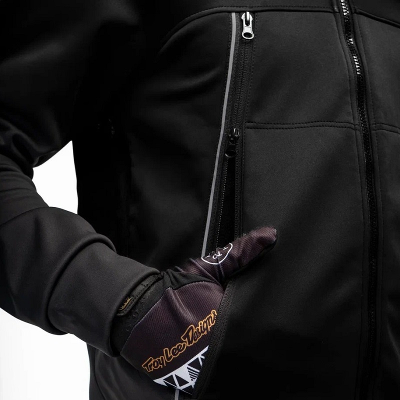 Куртка выполненна из материала софтшел внутри которого находится мембрана, которая обеспечивает защиту от ветра и дождя.