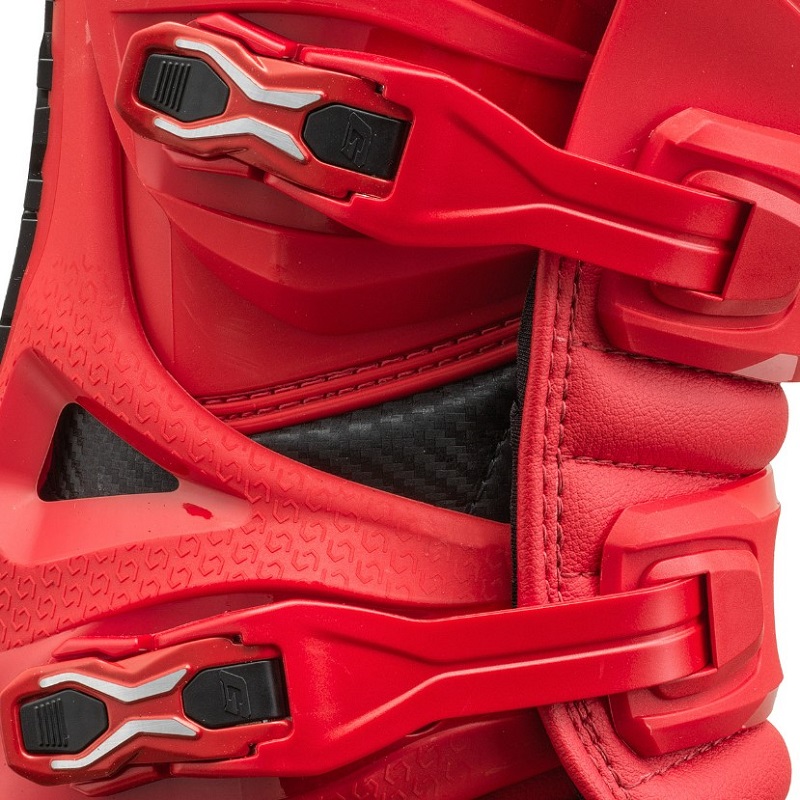 Передняя пластина из прочного термопластика позволяет при помощи 3 винтов подогнать ботинок более точно по размеру или под большой наколенник.
