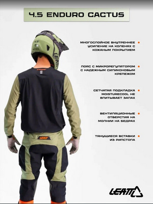 - Прочный но легкий материал, усиленный армированной нитью в области сидения, на бедрах и коленях.