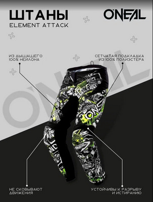Oneal Мотоштаны Element Attack Черный/Зеленый