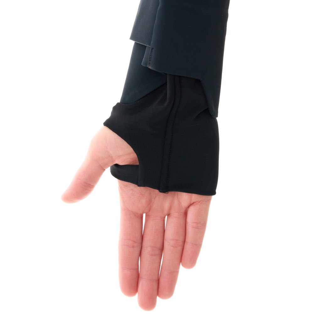 - Рукава снабжены утяжкой на липучке, внутри располагаются манжеты с прорезью для большого пальца