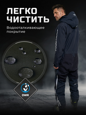 - Комбинезон имеет внешний регулируемый по объему манжет и внутренний манжет с отверстием для большого пальца, выполненный из эластичной лайкры, регулируемые по длине интегрированные подтяжки, капюшон регулируемый по объему в двух плоскостях, штанины снабжены снегозащитными гетрами, предотвращающими попадание снега и влаги внутрь ботинок и комбинезона. Центральная двухзамковая влагозащитная тракторная молния и дополнительная подпланка надёжно защищают от проникновения влаги внутрь и позволяют с лёгкостью справить нужду.