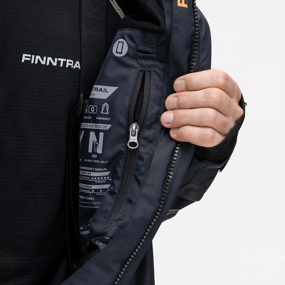 - Два внутренних кармана: один на молнии с отверстием для наушников, а также с инструкцией для самоспасения в случае попадания в чрезвычайные ситуации и один из сетки для головного убора и перчаток.
