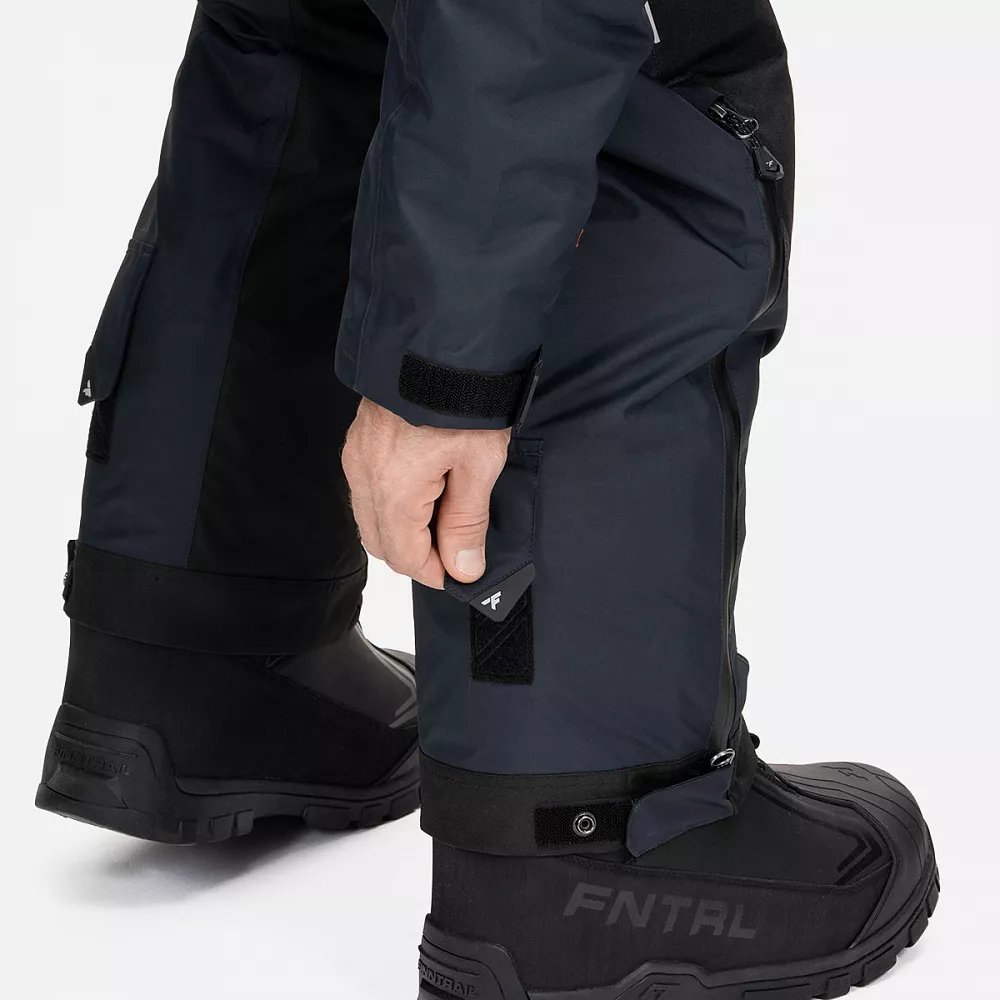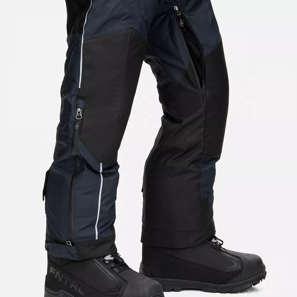 - Влагозащитные молнии по боковым швам штанин для удобного надевания с высокой обувью.