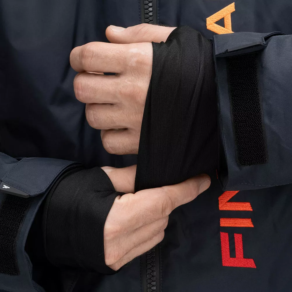 - Регулируемые внешние и внутренние манжеты из эластичной лайкры с отверстием для большого пальца создают дополнительное утепление и защищают от холодного воздуха.