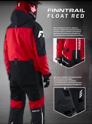Плавающий снегоходный комбинезон Finntrail Float обеспечит безопасность при передвижении по тонкому льду, на зимней рыбалке или при езде на снегоходе. Комбинезон оснащён уникальной технологией F.I.L.L. для уверенной поддержки на воде, рассчитан на использование при температуре до -30ºС. 2.5-слойной износостойкая ткань с мембраной HARD-TEX и технологичный утеплитель Thermalrate обеспечивает защиту от мороза, ледяного ветра и проникновения влаги.
