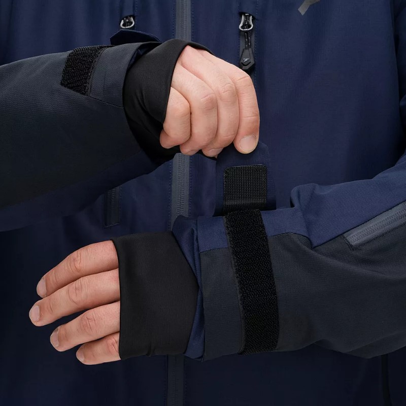 - Регулируемые внешние манжеты и внутренние эластичные манжеты обеспечивают плотное прилегание и защищают от проникновения ветра и влаги в рукава.