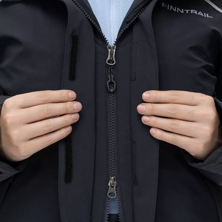 - Центральная двухзамковая тракторная молния YKK Vislon с двумя ветрозащитными планками на магнитах для защиты от ветра.
