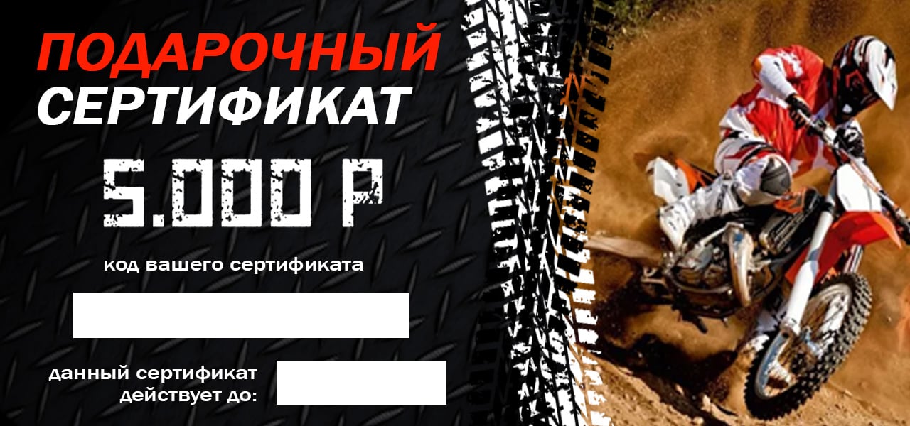 Настоящий сертификат номиналом три тысячи рублей позволяет его владельцу приобрести в интернет магазине crossenduro.ru, либо в розничных магазинах товаров, на сумму, равную номиналу сертификата